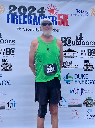 Every race I run these days seems to be slower than the one before, and this fact was never more apparent than in my running of the Firecracker 5-K in Bryson City on the Fourth of July. I have run this relatively easy course seven times over the years, with various running friends, and watched my finish times plummet every year. And since I am an obsessive runner and have been recording my races on a spreadsheet for 216 races, I can share the dismal reality: